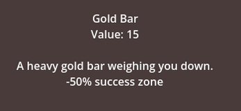 Every item you carry makes stealing harder. The more you take, the riskier each attempt becomes.